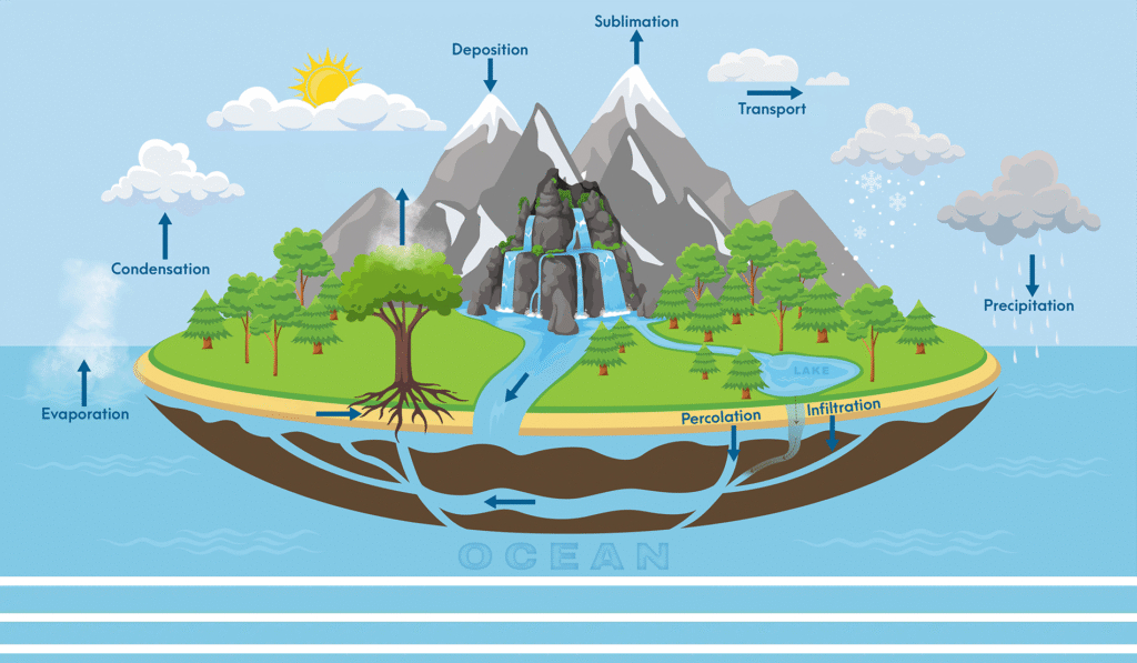 • Natural ecosystems recycle water without ever polluting or wasting it.