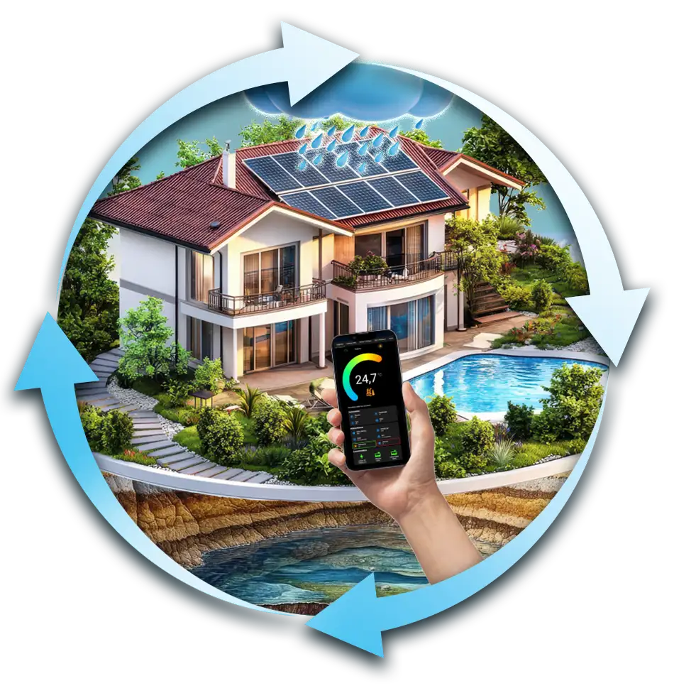 Le pilotage Bio intelligent orchestre automatiquement les cycles, protège en hors-gel et optimise vos énergies (Solaire, Heures Creuses, Autonome, pilotage PAC) – jusqu’à une piscine quasi/autonome.